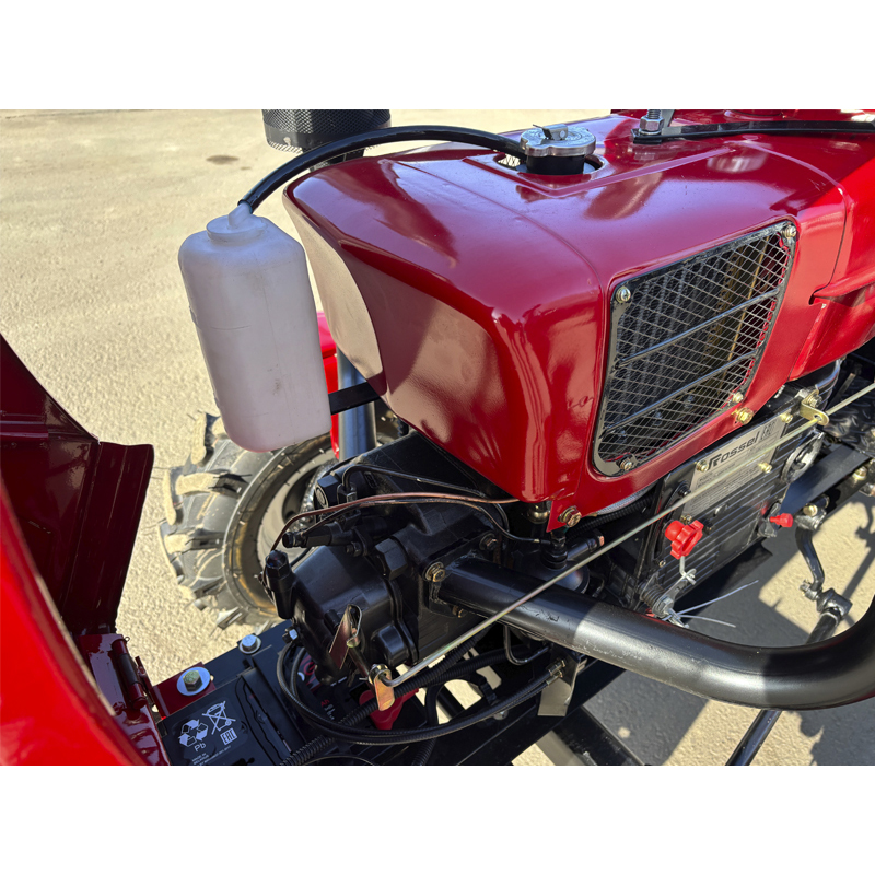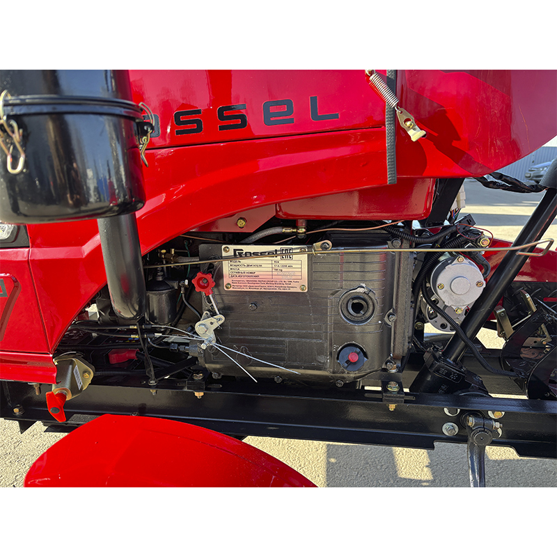 Использование световых приборов необходимо при передвижении на малогабаритной технике по дорогам общественного пользования. На тракторе Rossel XT-20D Pro установлены галогеновые фары с хромированным отражателем, который выдерживает высокую температуру. Передний рассеиватель создают из специального полимерного материала, который рассеивает лучи и не слепит встречный транспорт, но при этом отлично освещает дорожный участок.