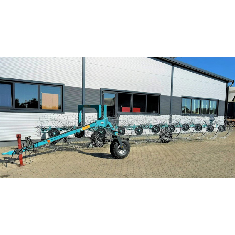 Ширина захвата 850 см и 10 секций обеспечивают производительность от 4 до 7 га/ч при рабочей скорости до 15 км/ч. Эти грабли-ворошилки имеют габариты 500 см в длину, 900 см в ширину и 175 см в высоту, а их вес составляет 1100 кг.