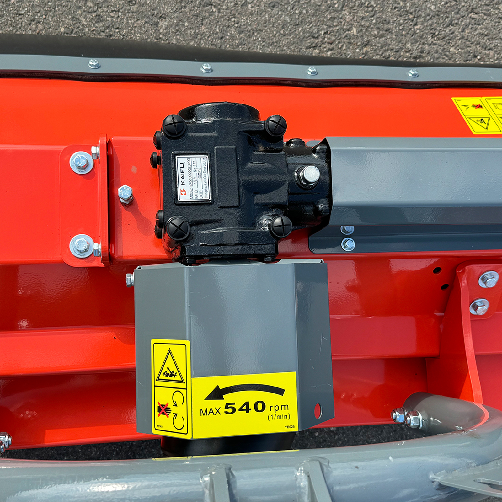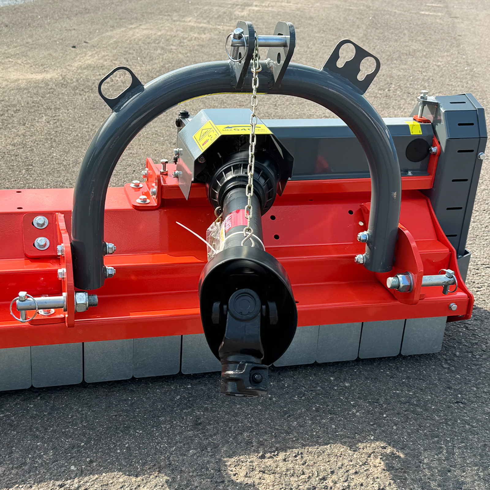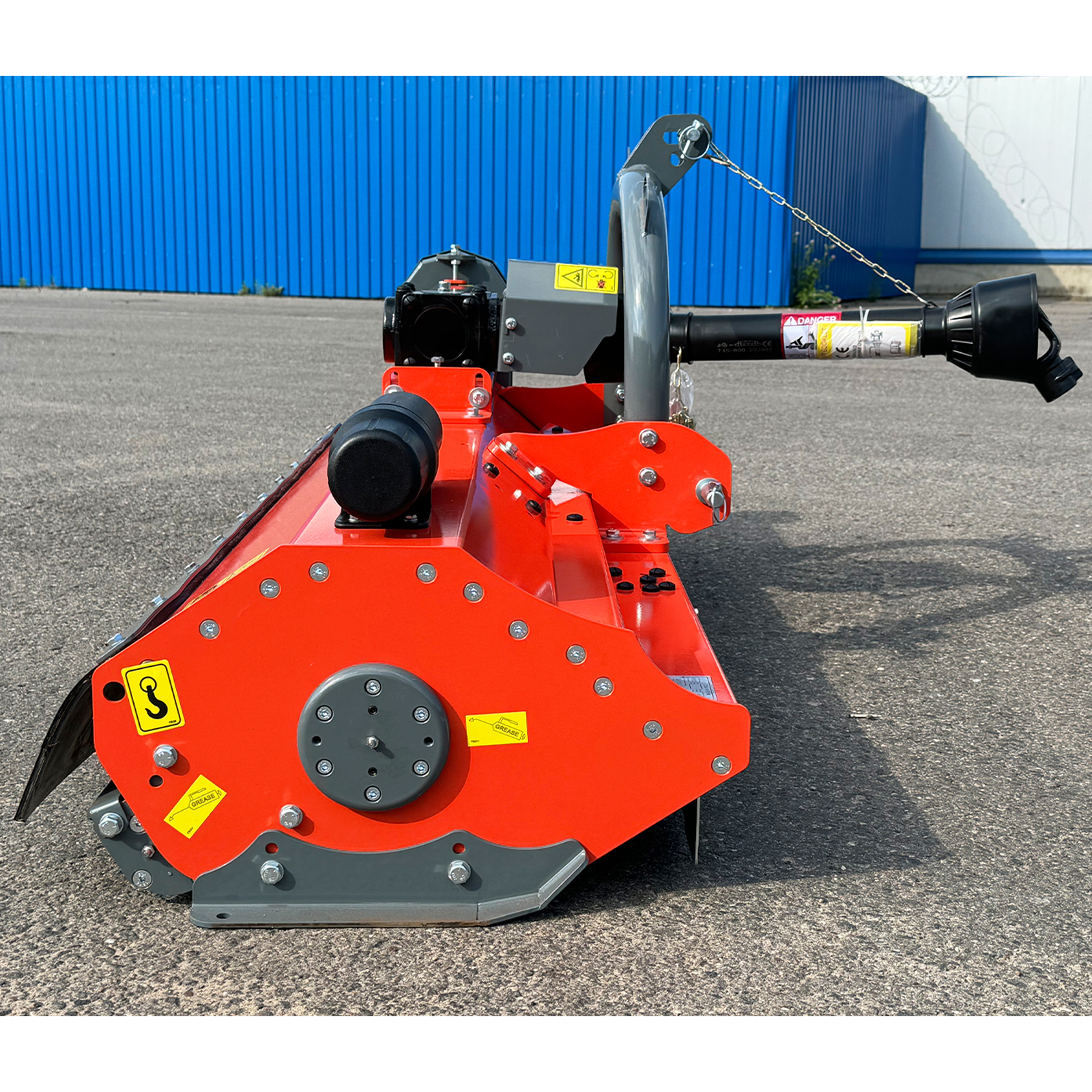 Стандартное оборудование включает 3-точечную навеску категории I, полозья, регулируемую высоту среза травы от 4 до 6 см, самоочищающийся выравнивающий ролик и приводной вал ВОМ. Кованые и закаленные молотковые ножи обеспечивают долговечность и высокую эффективность работы.