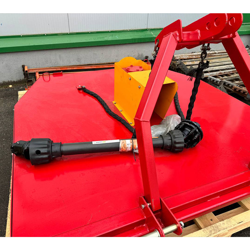 Габаритные размеры косилки составляют 2010 мм в длину, 1770 мм в ширину и 940 мм в высоту, а её вес не превышает 200 кг, что делает её компактной и удобной в транспортировке. В комплект к косилке входит карданный вал размером 8*8.