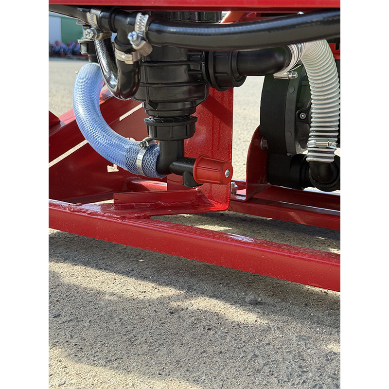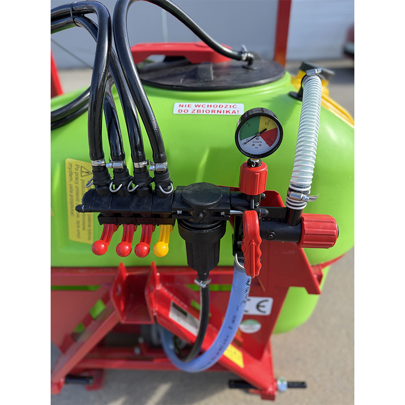 Корпус опрыскивателя имеет современные улучшения: бак итальянского типа из гранул с более высоким весом, обеспечивающий долговечность, и верхнюю направляющую для равномерного распределения жидкости. Дополнительный бак для промывки системы и глицериновый манометр делают процесс обслуживания простым и удобным.