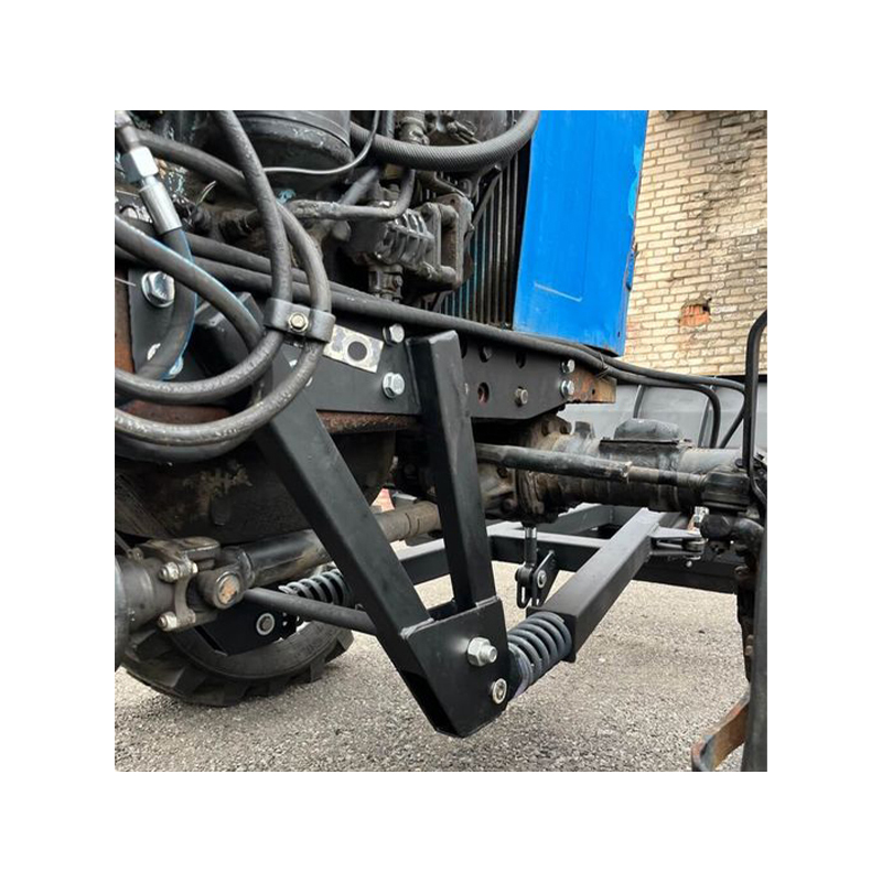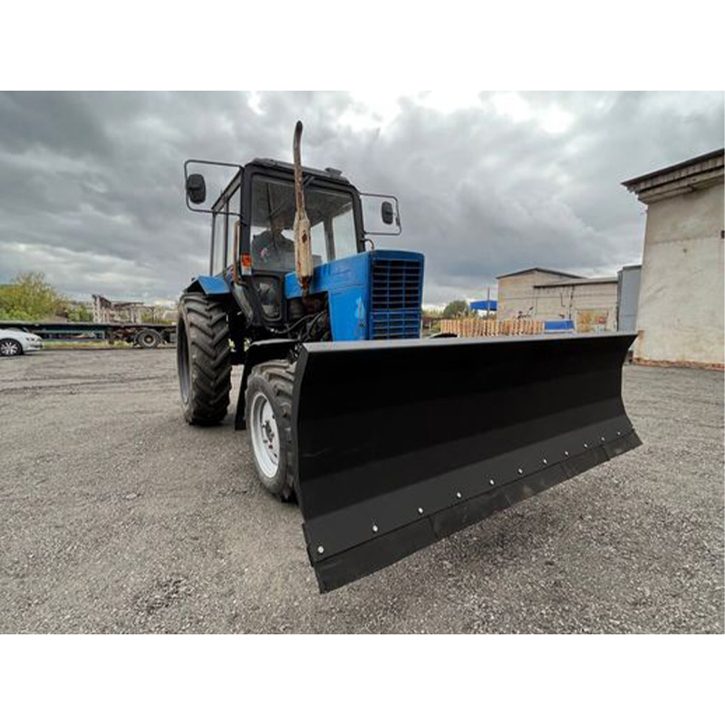 Отвал изготовлен из качественных материалов: зеркало отвала имеет толщину 4 мм, усилительные распорки выполнены из швеллера 6,5, а рама собрана из прочных труб 80×80×4 мм. Конструкция усилена 6 ребрами жесткости, а также компенсирующими пружинами для минимизации нагрузок. Масса оборудования составляет 225 кг, что гарантирует его устойчивость и надежность в работе.