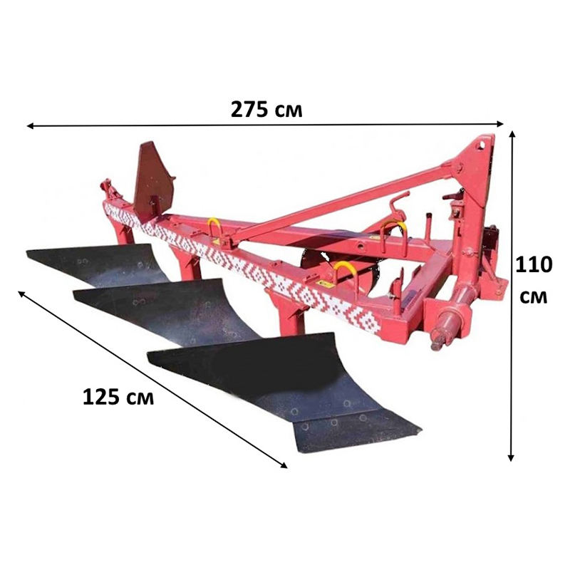 Особенностью данного плуга является возможность регулировки нажима полевой доски на стенку борозды с помощью поворота кривошипа вперед или назад. Это улучшает управляемость и точность вспашки, обеспечивая высокое качество обработки почвы. Габариты плуга в транспортном положении составляют 275 см в длину, 125 см в ширину и 110 см в высоту, при весе 250 кг. Компактные размеры и относительно небольшой вес делают его удобным для транспортировки и хранения.