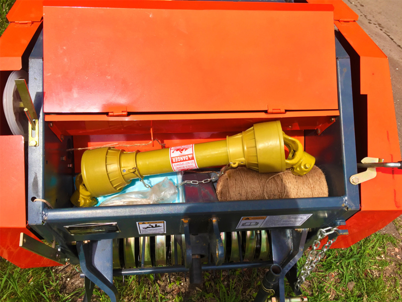 Технические характеристики: Рекомендуемая мощность трактора составляет не менее 20 л.с. Вал отбора мощности (ВОМ) служит для привода рабочего механизма. Этот пресс-подборщик имеет ширину захвата 0,7 м и размеры рулона 0,5 м в диаметре и 0,7 м в длину. Также впечатляет его производительность - от 80 до 120 рулонов в час, а масса рулонов варьируется от 15 до 25 кг.