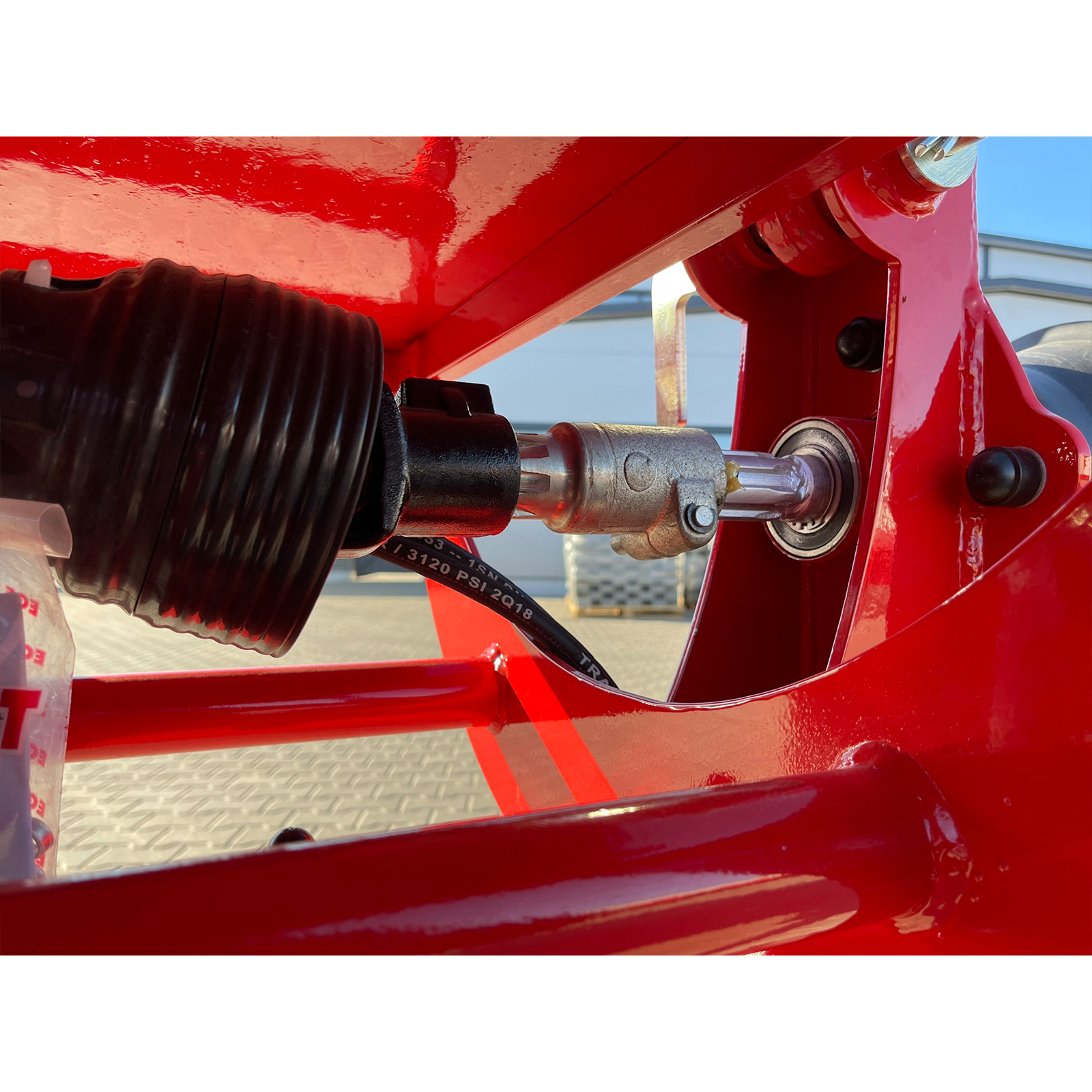 Привод осуществляется от вала отбора мощности (ВОМ), с алюминиевым двухскоростным редуктором, что гарантирует стабильную и эффективную работу. Рабочая скорость достигает 13 км/ч. Разбрасыватель подходит для тракторов тягового класса 1,4 и 2.