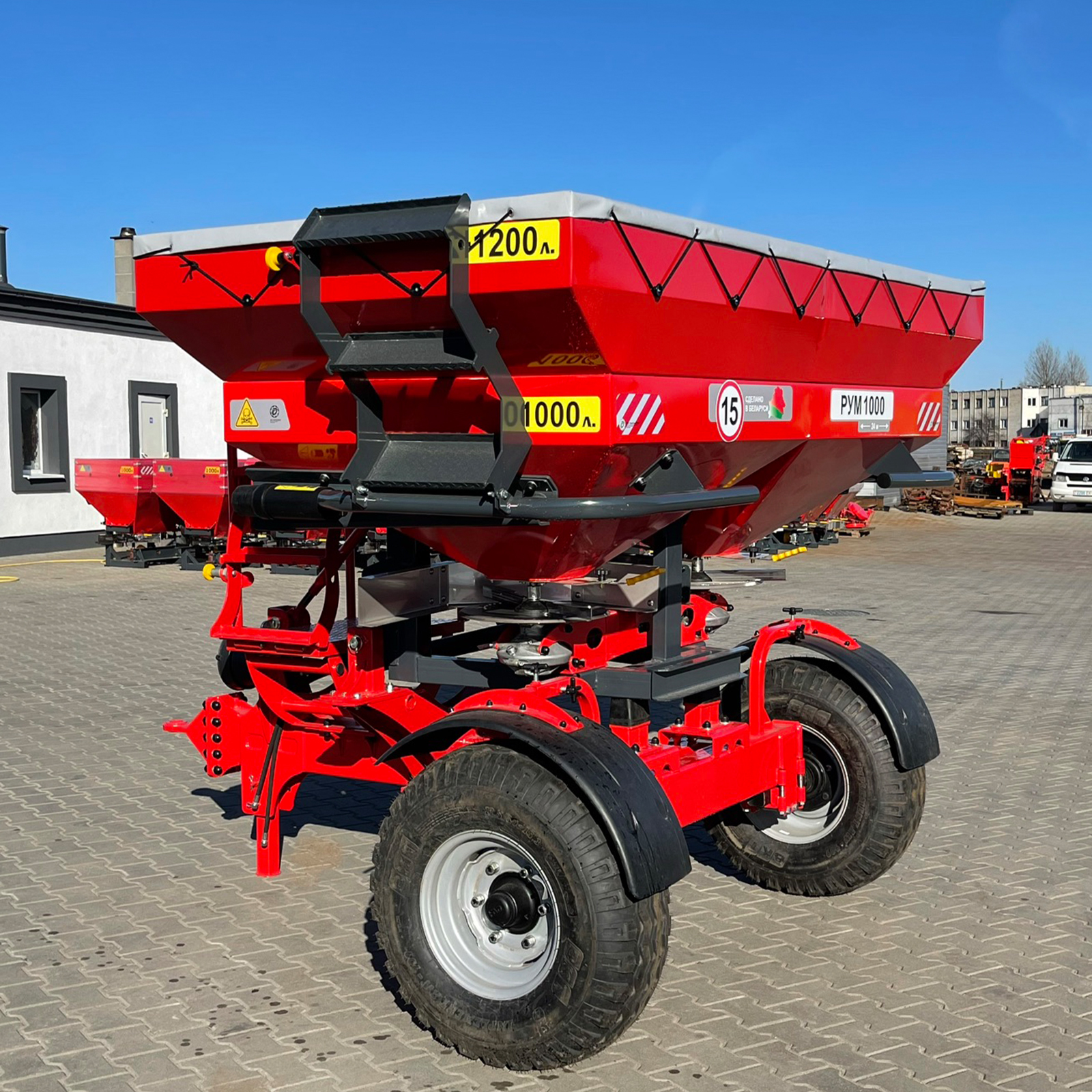 Разбрасыватель удобрений двухдисковый РУМ-1000 «Профи» TRUCK с надставкой 1200 л (тент домик) – это высокоэффективное и надежное оборудование для внесения гранулированных удобрений. Разбрасыватель обладает объемом бункера в 2200 литров и щелевым дозатором. Оборудование обеспечивает точное и равномерное распределение удобрений. Два разбрасывающих диска диаметром 445 мм с двумя лопатками на каждом диске обеспечивают ширину захвата от 160 до 340 см, что позволяет охватить большую площадь за короткое время.