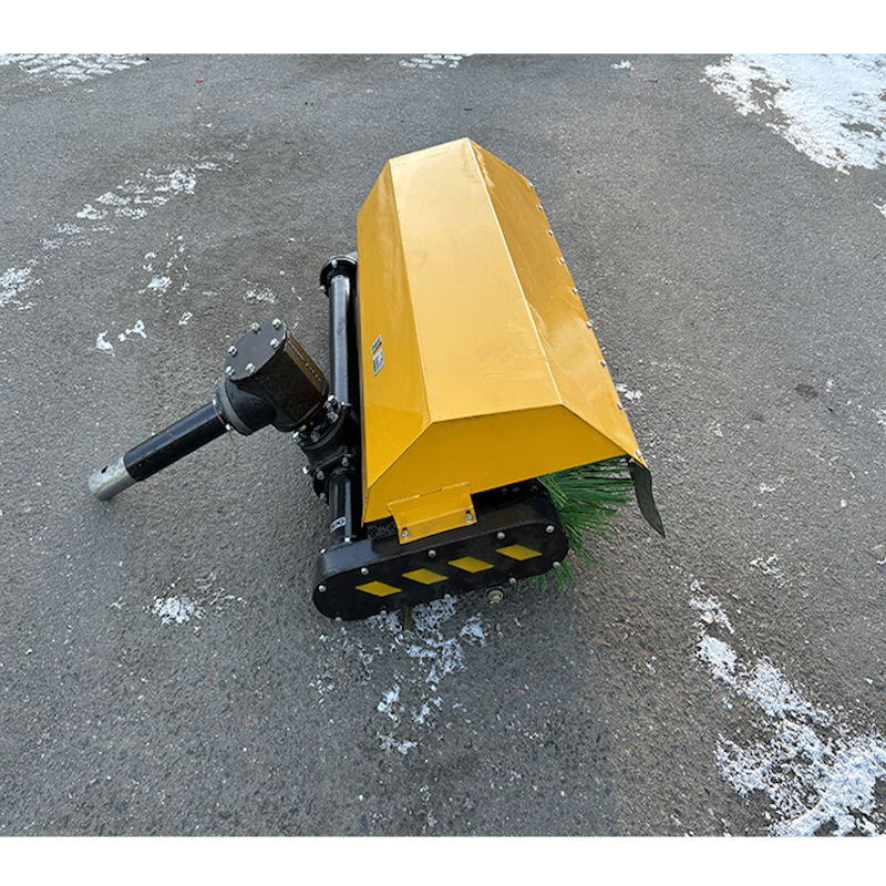Щетка крепится спереди мотоблока, обеспечивая удобство и простоту управления. Корпус щетки может перемещаться вокруг оси вращения, что позволяет адаптировать угол уборки в зависимости от условий. Благодаря компактным габаритам (94×90×52 см) и весу 80 кг, установка и эксплуатация не вызывают сложностей.