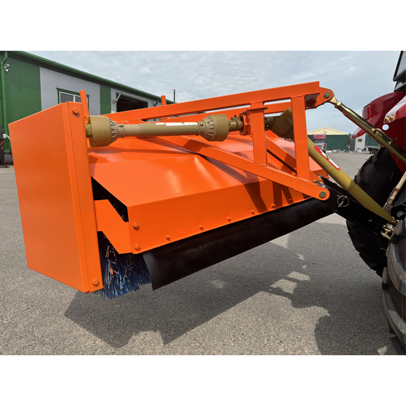 Ширина захвата щетки составляет 140 см, поэтому возможно охватить больше площади за одно прохождение. На щетке установлено 31 полипропиленовый диск, который надежно закреплен, что предотвращает выпадение ворса. Высокая частота вращения вала щетки (251 об/мин) и частота вращения ВОМ трактора (540 об/мин) гарантируют эффективное подметание на скорости до 8 км/ч.