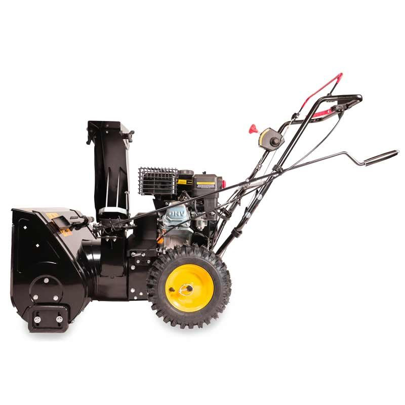 Самоходная модель оснащена ступенчатой трансмиссией с 6 передачами (4 вперед и 2 назад), что позволяет выбрать оптимальную скорость для различных условий и участков. Колеса диаметром 30 см обеспечивают отличную маневренность и устойчивость на скользких поверхностях. Также снегоотбрасыватель Champion ST55 снабжен регулируемым раструбом для выброса снега, который управляется с панели оператора, позволяя точно контролировать направление.