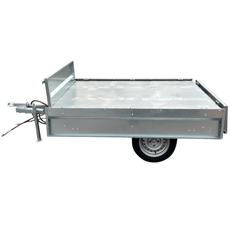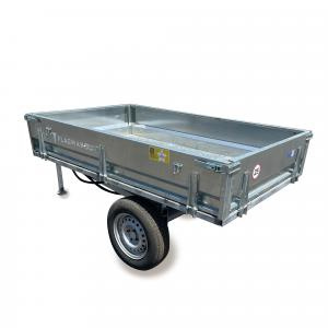 Габариты прицепа (2910x1280x1060 мм) позволяют легко маневрировать и использовать его на ограниченных площадях. Несмотря на свою прочную конструкцию, вес прицепа составляет всего 220 кг, что делает его удобным для использования с мини-тракторами без излишней нагрузки на технику. Данная модель прицепа обладает возможностью быстро откинуть борта и превратить прицеп в ровную платформу. Откидные борта облегчают доступ к грузу и делают процесс загрузки и разгрузки комфортным.