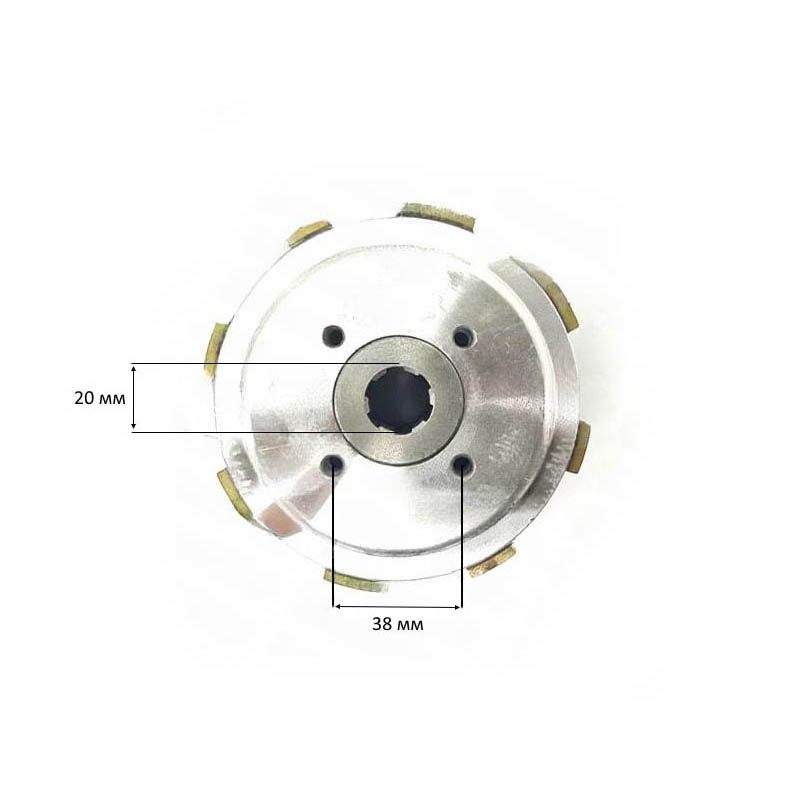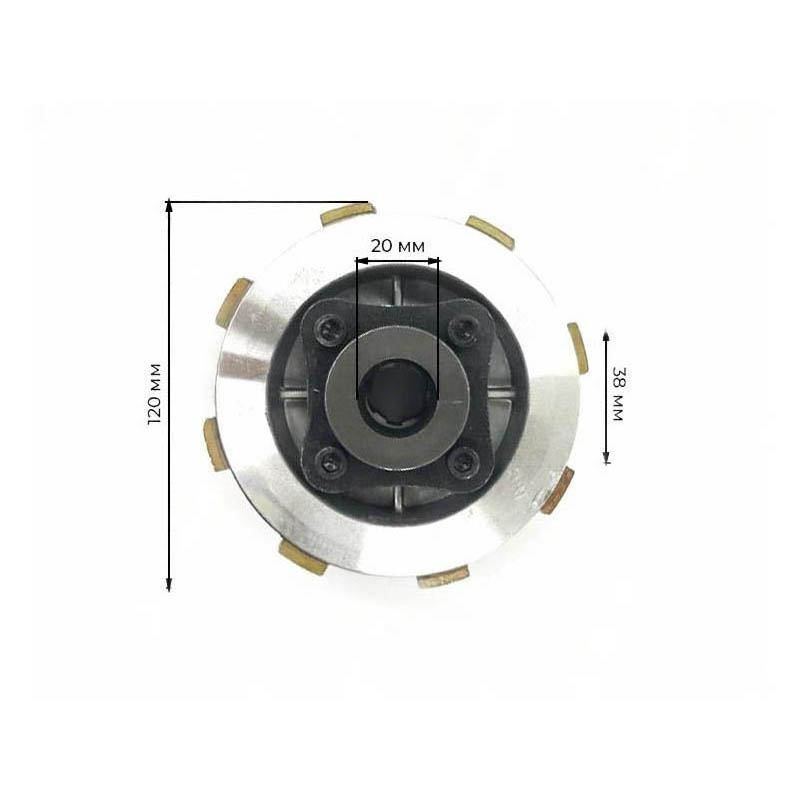 Муфта сцепления— это элемент, участвующий в передаче крутящего момента от двигателя к колесам, меняя его величину и направление. Сцепление в сборе разъединяет и плавно соединяет двигатель с другими элементами трансмиссии. Подходит для дизельных (6-12 л.с.) и бензиновых ( 9-18 л.с.) двигателей мотоблоков с воздушным охлаждением: Rossel, Кентавр (Kentavr), Shtenli (Штенли), Зубр (Zubr), Заря, Forte (Форте), Profi (Профи), Град, Grosser (Гроссер), Хопер, Kepler (Кеплер), Groff (Грофф), Скаут (Scout), Fermer (Фермер), Catmann (Кэтман), Xingtai (Синтай) и иные. Диаметр наружный — 120 мм.